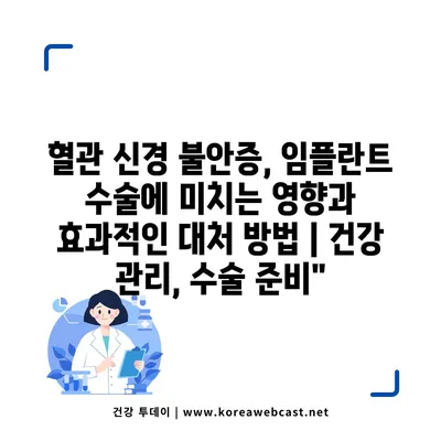 혈관 신경 불안증, 임플란트 수술에 미치는 영향과 효과적인 대처 방법 | 건강 관리, 수술 준비에 대해 알아보겠습니다. 혈관 신경 불안증은 불안이나 스트레스가 심해지는 증상입니다. 이러한 증상이 있을 경우, 임플란트 수술을 받는 데 영향을 줄 수 있습니다. 이러한 불안증은 심박수 증가, 발한, 떨림 등의 신체 증상을 유발할 수 있으며, 수술 중 긴장감을 높여 결과에 부정적인 영향을 … Read more