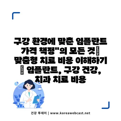 구강 환경에 맞춘 임플란트 가격 책정”의 모든 것| 맞춤형 치료 비용 이해하기 | 임플란트, 구강 건강, 치과 치료 비용